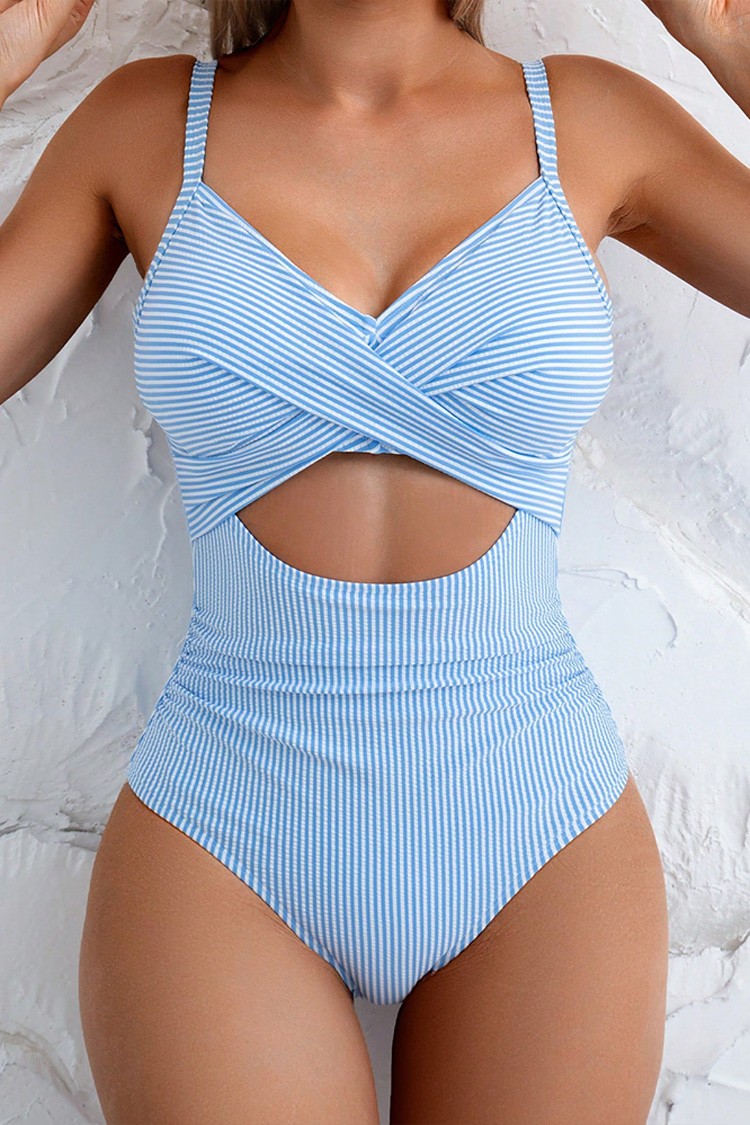 - Egyrészes fürdőruha vonzó csíkos mintával, amely kényelmes viseletet biztosít.