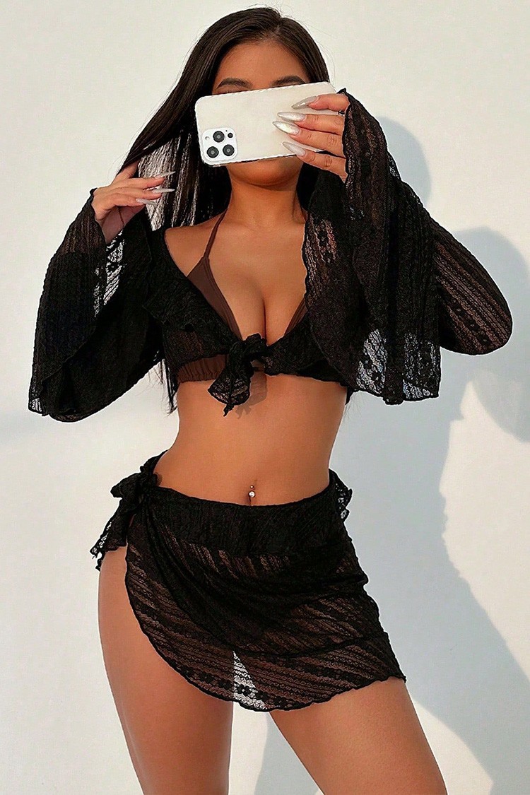 - Divatos strand szett, amely kétrészes fürdőruhát, pareót hosszú ujjal tartalmaz.