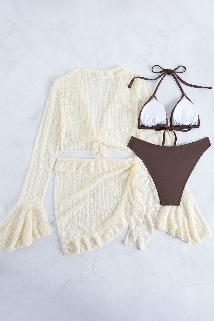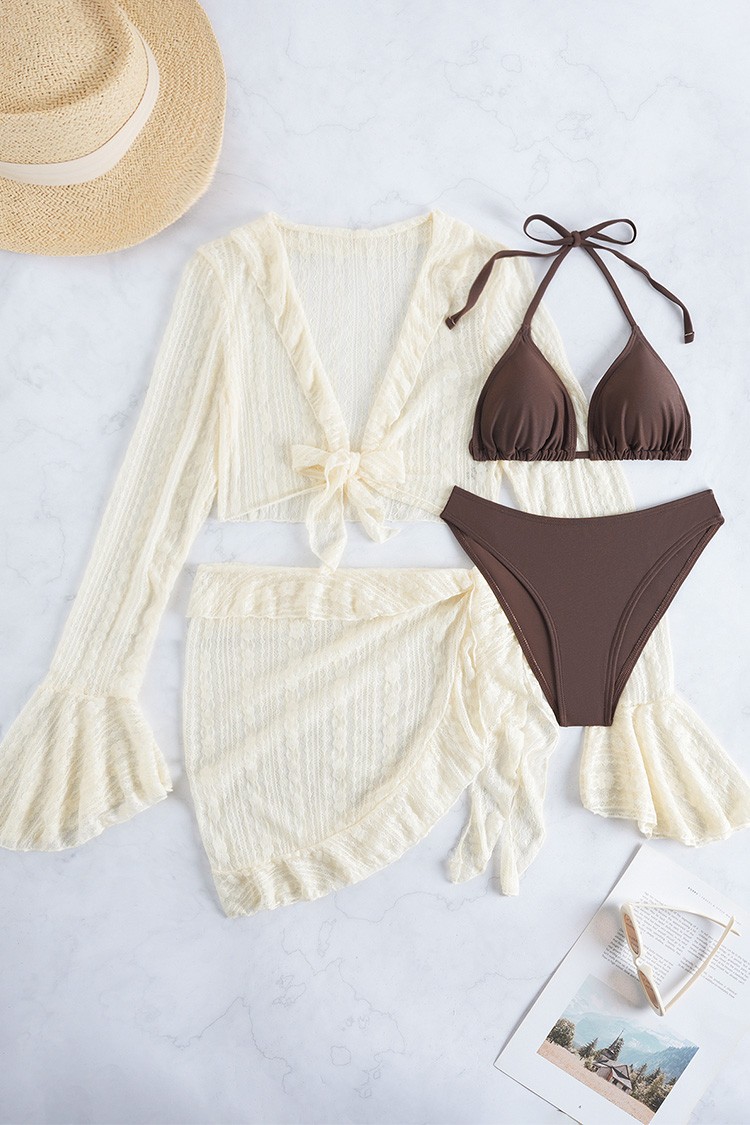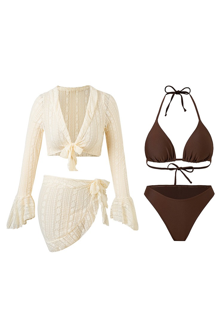 - Trendi strand szett, amely tartalmaz egy kétrészes fürdőruhát, hosszú ujjú pareót.