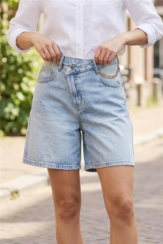- Mutatós női rövidnadrág modell, amely alkalmas mindennapi életre vagy szabadidőre.