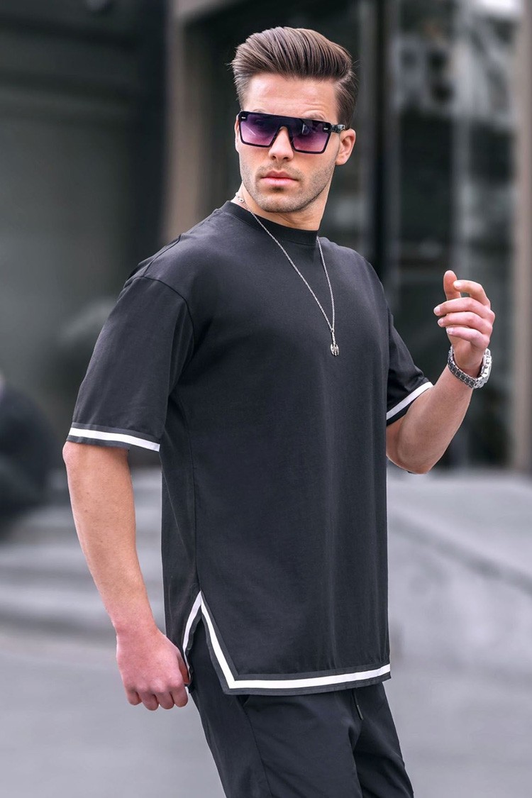 - Modern szabású férfi póló, amely alkalmas mindennapi és divatos megjelenésre.