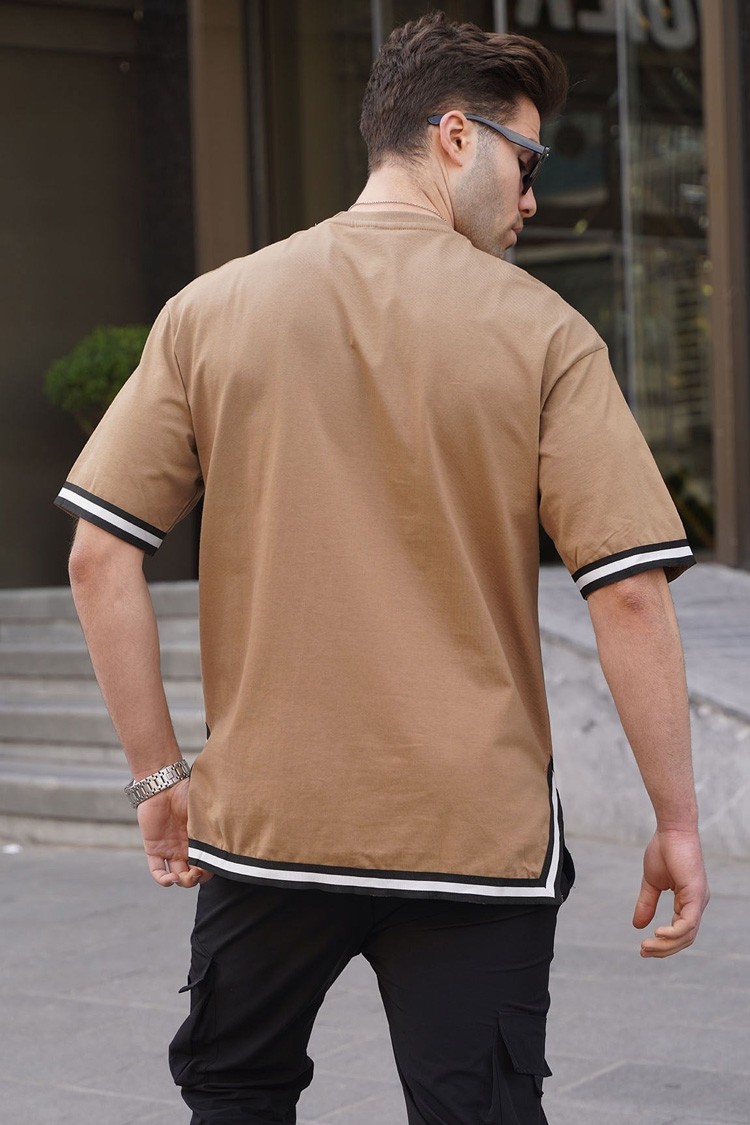 - Modern szabású férfi póló, amely alkalmas mindennapi és divatos megjelenésre.