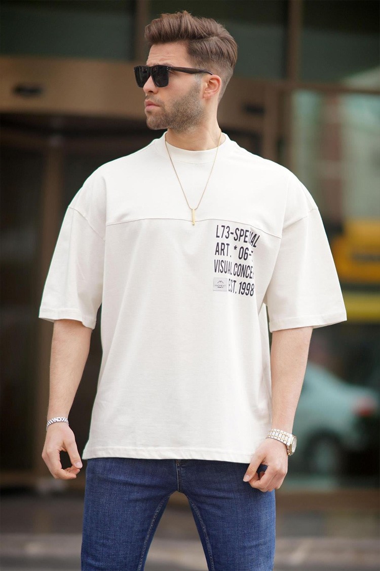 - Modern szabású férfi póló, amely alkalmas mindennapi és divatos megjelenésre.
