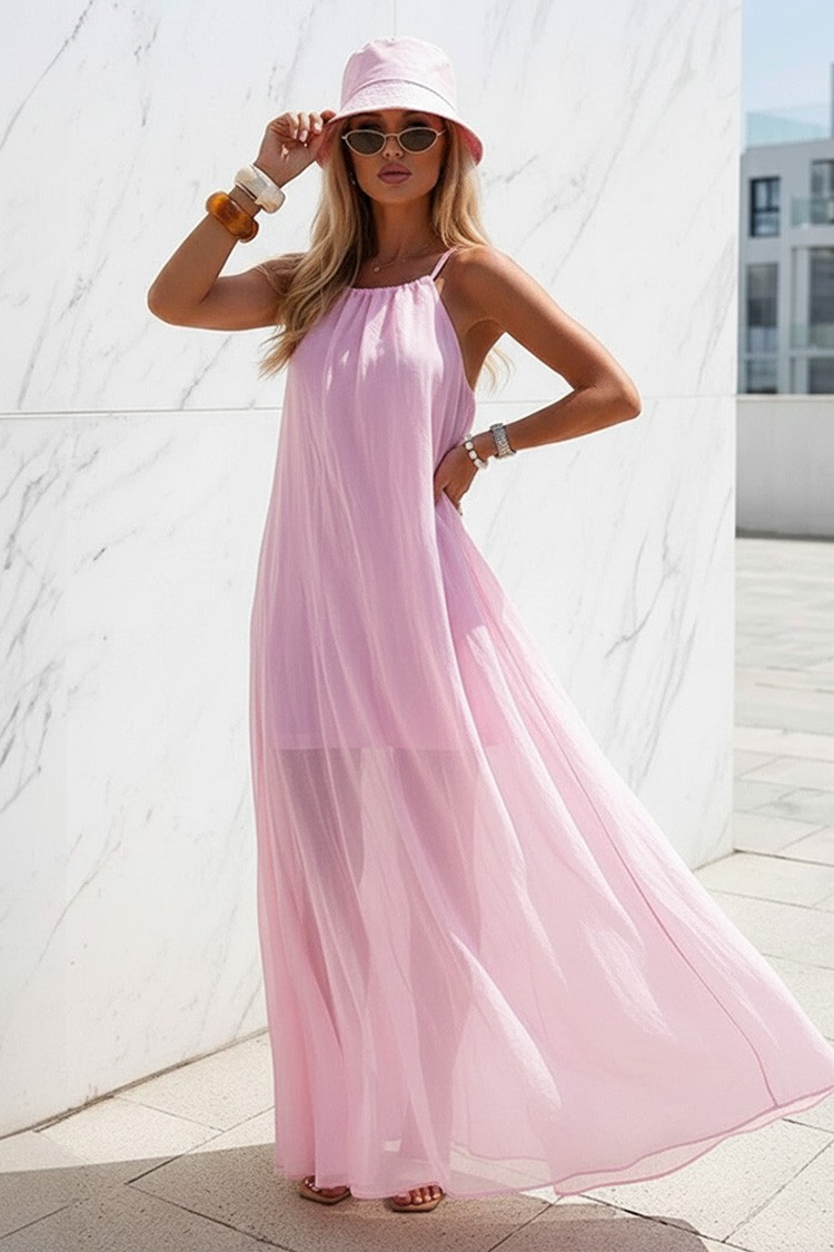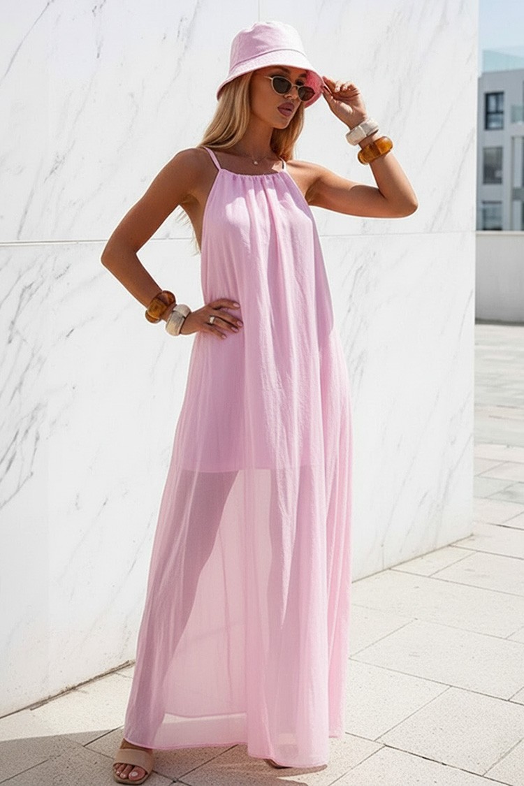 - Trendi és mindennapi megjelenésért válaszd ezt a hosszú ruhát vonzó dizájnnal, púder színben.