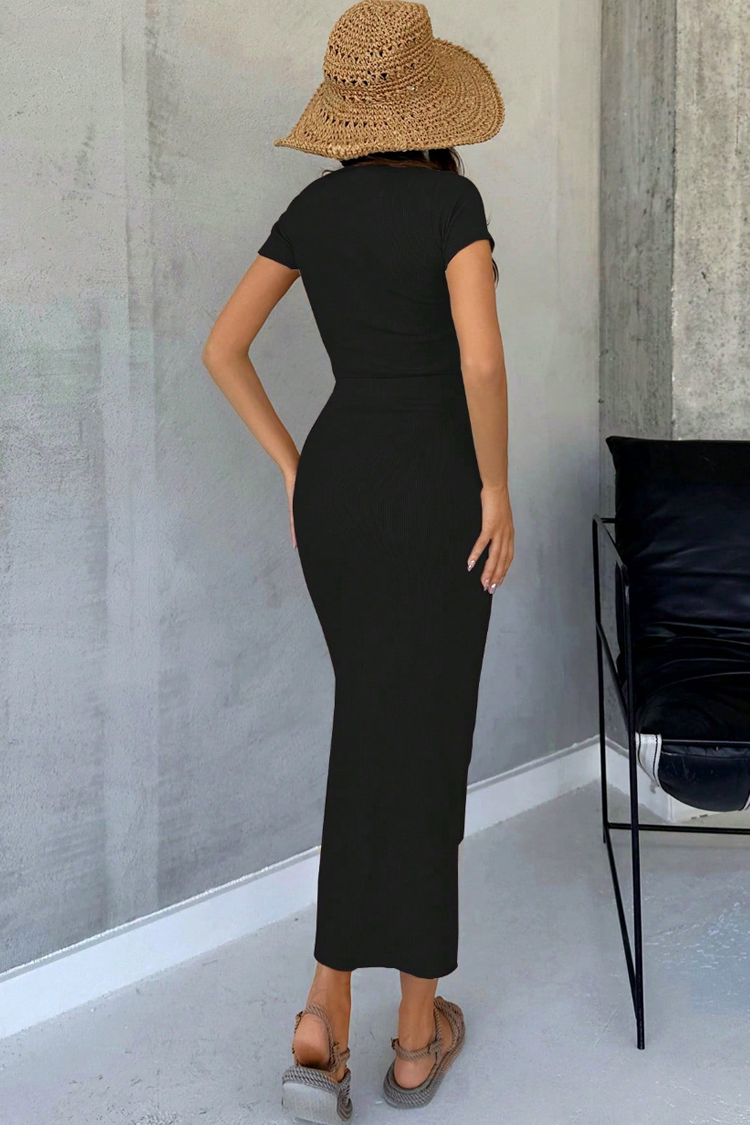 - A szoknya testhezálló, szexi hasítékkal az egyik oldalon, midi hosszúságú és magas derékkal.