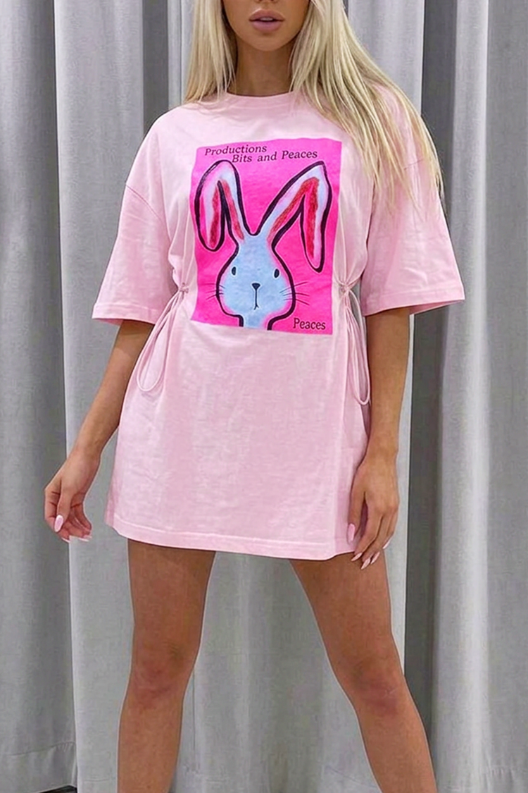 - A modell OVERSIZE szabású, rövid ujjú, modern nyuszi mintás, klasszikus kerek nyakkivágású és zsebes.