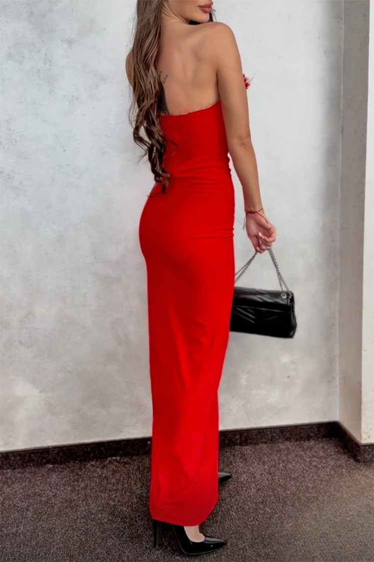 FAROLMA RED elegáns hosszú ruha magas hasítékkal, nyitott háttal