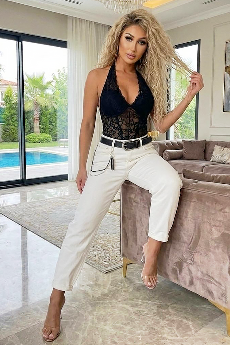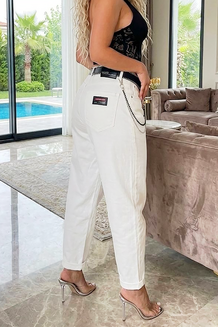 Világos árnyalatú női farmer, stílusos és modern, kissé lezser megjelenéshez.