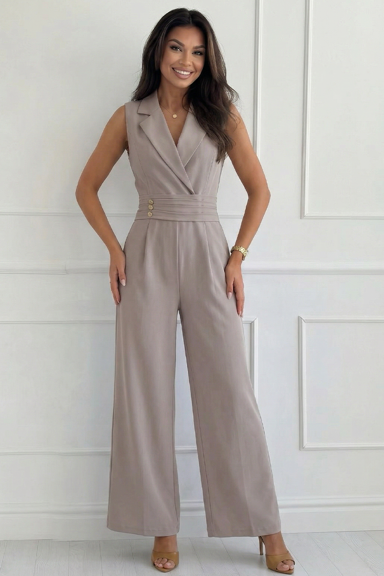 SELESTE MOCHA elegáns overál hajtókával, arany gombokkal