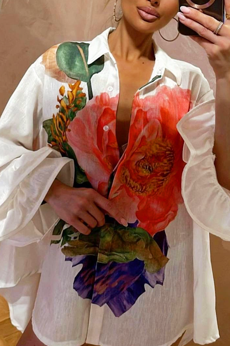 EVGENITA stílusos, aszimmetrikus női blúz látványos virágmintával
