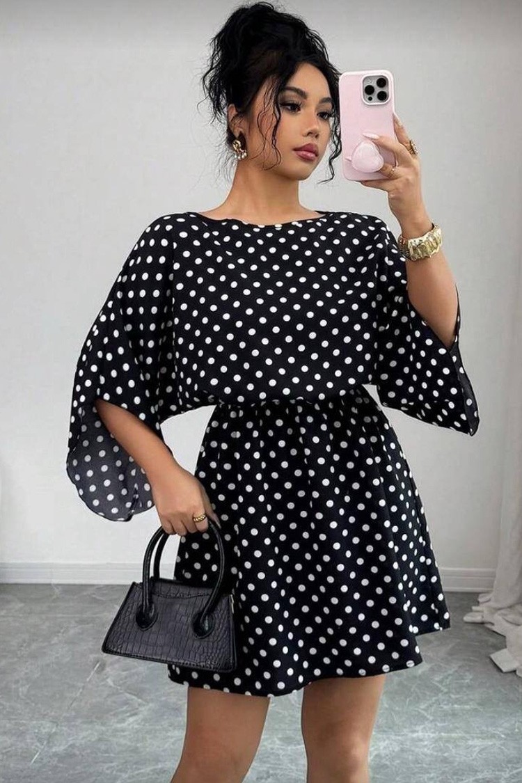 PETITA rövid ruha pöttyös mintával, bő ujjal