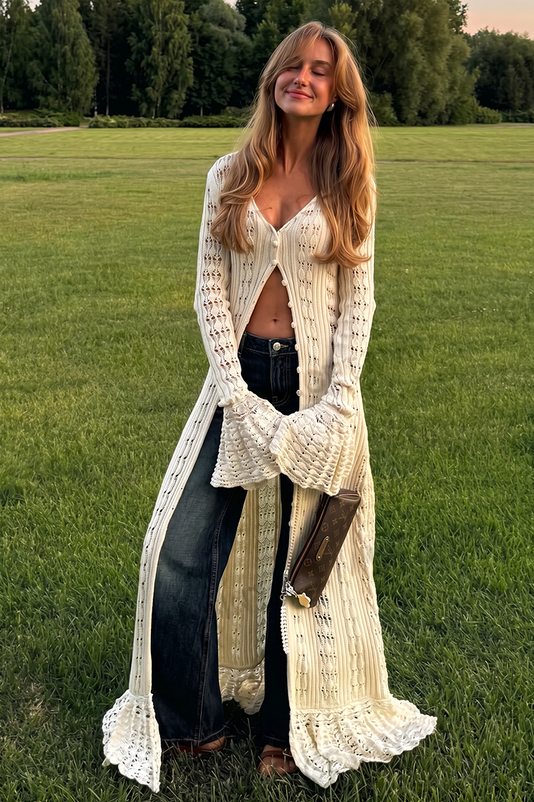 A finom kötés és a természetes hosszúság elegánsan ereszkedő vonalat hoz létre, amely kiemeli a sziluettet anélkül, hogy korlátozná a mozgást. A bő, légies ujjak légies és könnyed érzetet biztosít, a puha textúra pedig egész napos kényelmet biztosít.