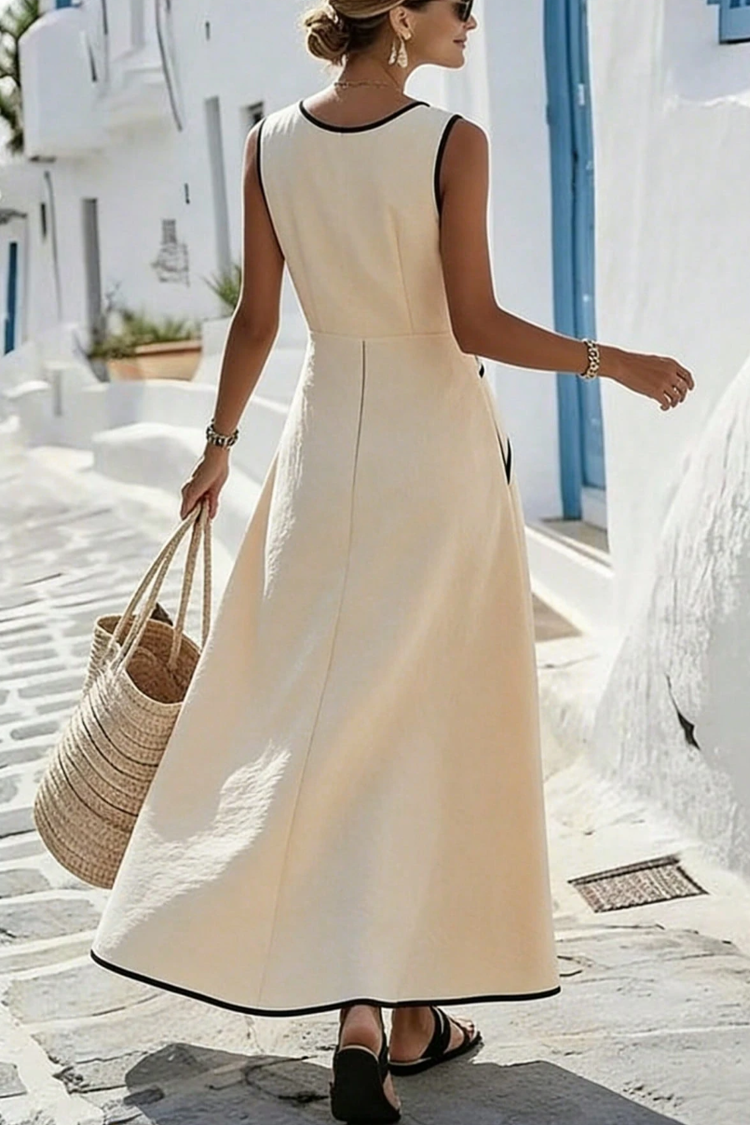 ANRIELA elegáns hosszú nyári ruha kontrasztos fekete szegéllyel