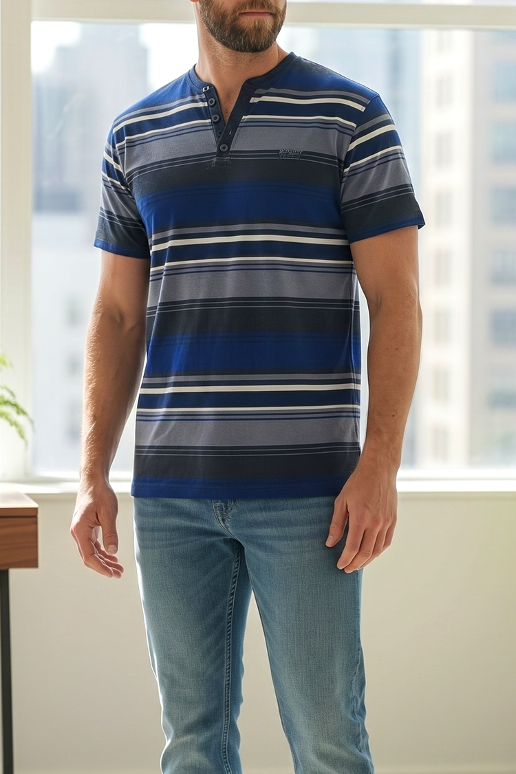 BLUFEGO klasszikus férfi csíkos rövid ujjú póló